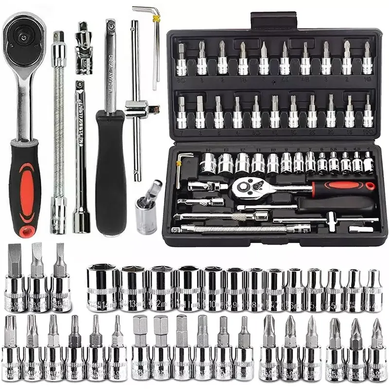 CATRON 1/4 inch Drive Socket Set & Metric Ratchet Wrench Set with 4-14 mm CR-V Sockets for Household Auto Precision Socket (Set of 46)byCATRON